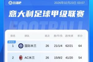 体育资讯02月23日讯 意甲第26轮,AC米兰0-1帕尔马,遭近25轮首败,红黑军团落后榜首国米10分!
