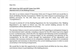关于2031年及2035年亚洲杯申办程序终止的通知