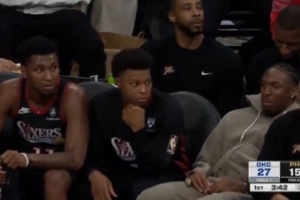 GIF-麦凯恩飚三分,老队友马克西表情迷茫~