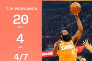 赛后,骑士官方发布哈登个人数据海报。