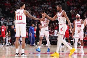 体育资讯04月10日讯 NBA常规赛,火箭在主场以113-102击败76人,豪取8连胜。