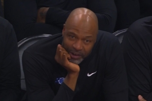 GIF-贝恩把球盖到杰伦·格林身上出界,裁判给前场球,魔术挑战成功