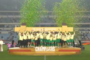 赛后颁奖仪式上,国安队长张稀哲带领国安全队,捧起了超级杯冠军奖杯!